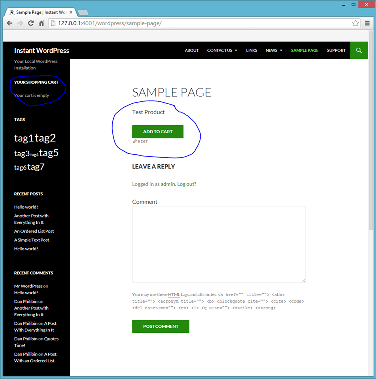 - Add the services or products you wish to sell on a new or existing page or post. Enter any textual content or images that describe the product and then include the shopping cart button using the following shortcode: [wp_cart_button name=”PRODUCT-NAME” price=”PRODUCT-PRICE”] Replace PRODUCT_NAME with the name of your product and PRODUCT_PRICE with its price. Save and publish the post or page.