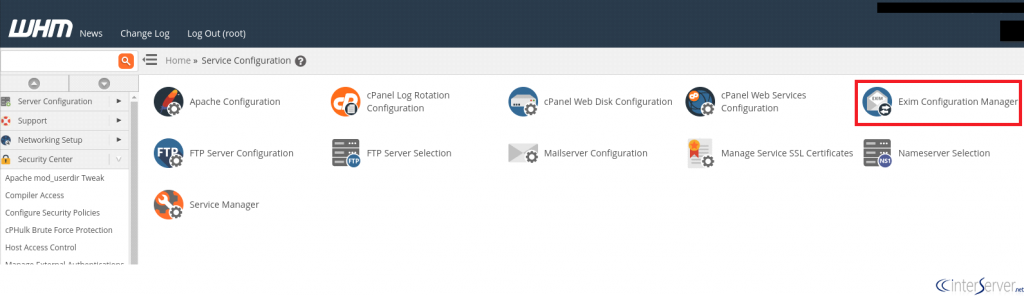 3) Select “Exim Configuration Manager” from the page.