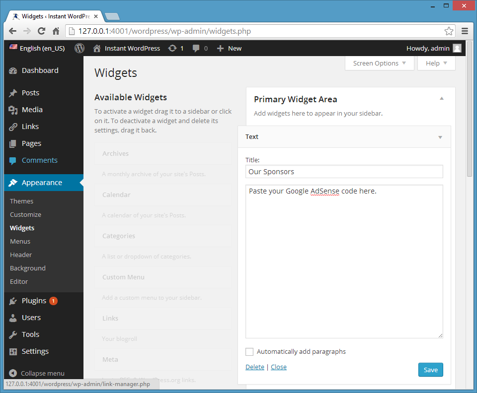Putting in AdSense Utilizing the Textual content Widget