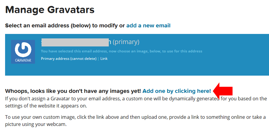 After the authorization step, you possibly can add the picture that you just’d like to make use of as your Gravatar. Click on the hyperlink so as to add a picture.
