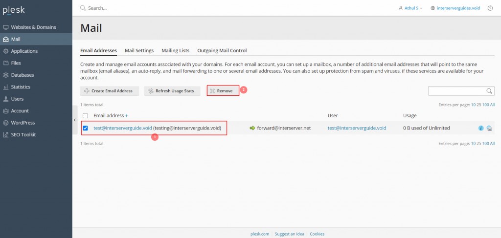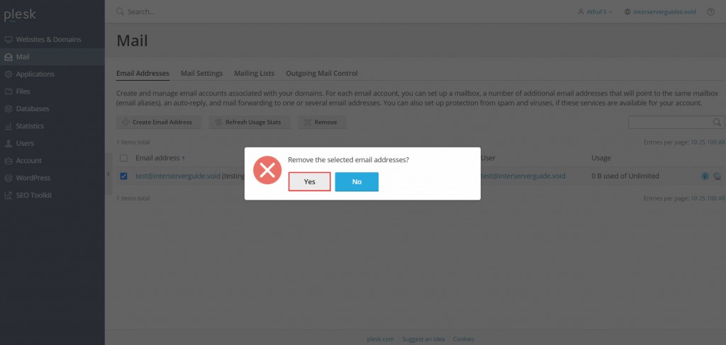 You can use the following steps to remove Email accounts from Plesk panel.